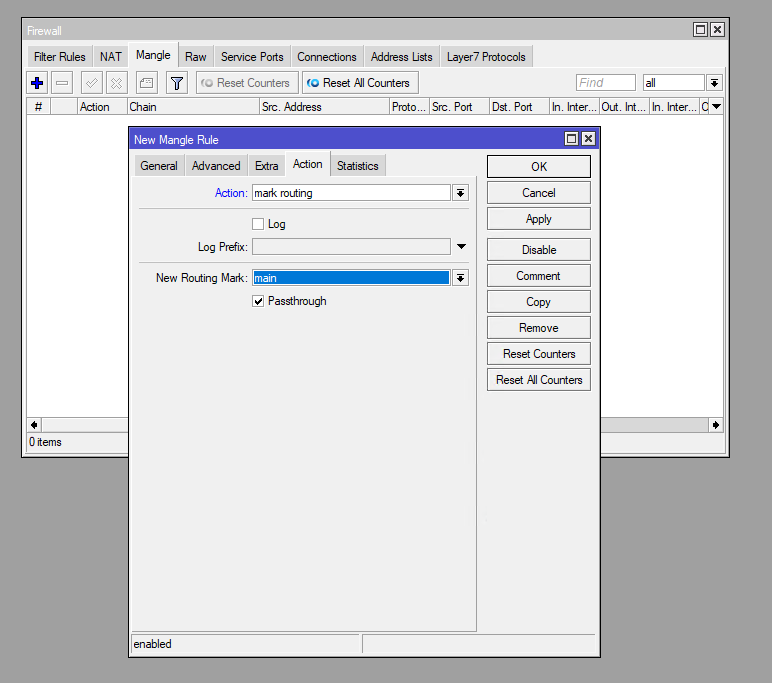 В седьмой версии Mikrotik RouterOS в WINBOX убрали возможность добавлять/создавать новый маркер пакетов Mark Routing, но это возможно сделать через терминал прям внутри winbox. Как видно на картинке, что пропал вариант добавить новый маркер, и в списке присутствует только маркер Main.