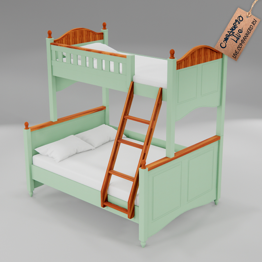 3D Модель (SketchUP `20) - Кровать детская двухъярусная деревянная (морская)