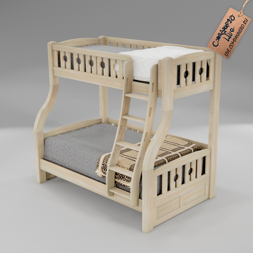 3D Модель (SketchUP `20) - Кровать детская двухъярусная деревянная (корабельная)