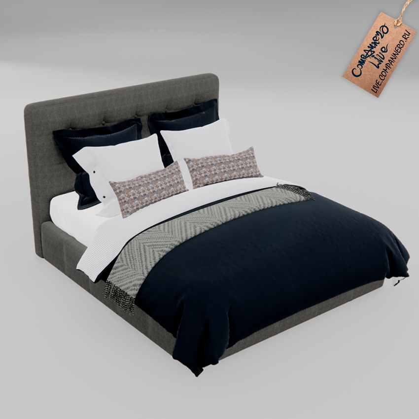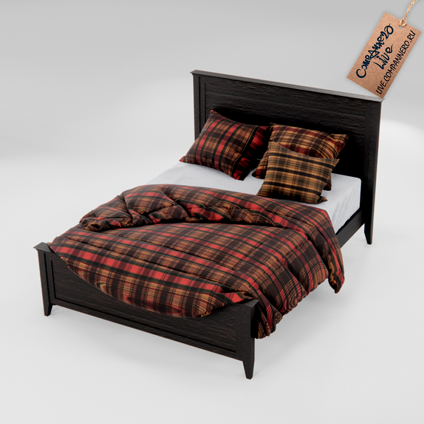 3D Модель (SketchUP `20) - Кровать большая, строгая, черная.
