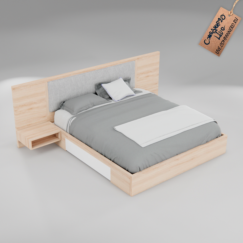 3D Модель (SketchUP `20) - Кровать большая светлая (с полками)