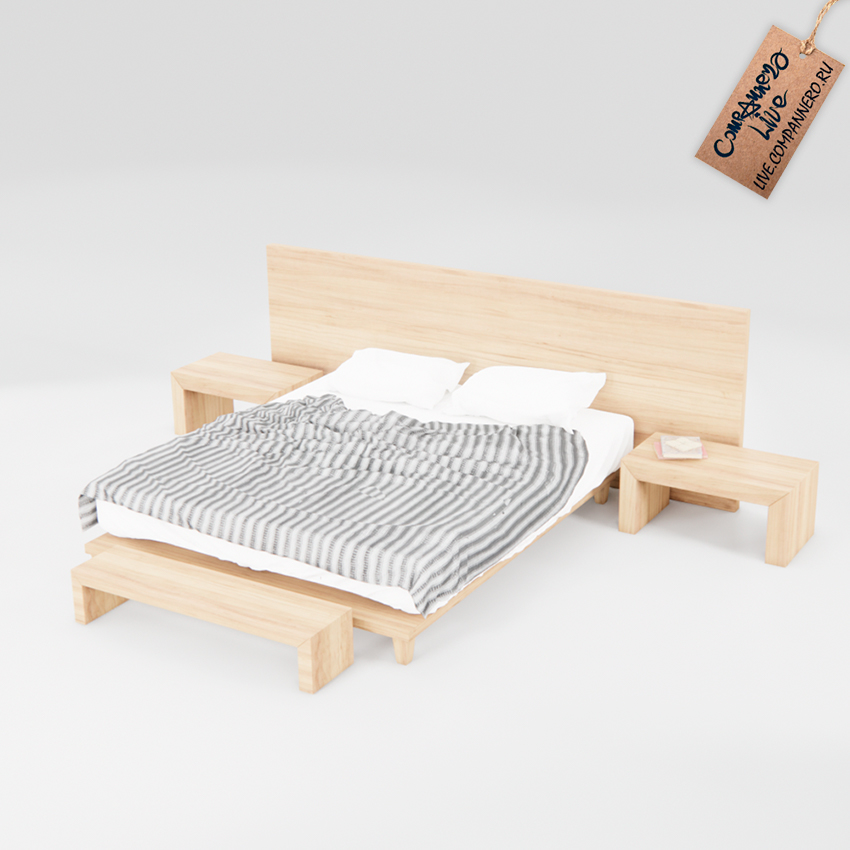 3D Модель (SketchUP `20) - Кровать с тумбами, большое изголовье