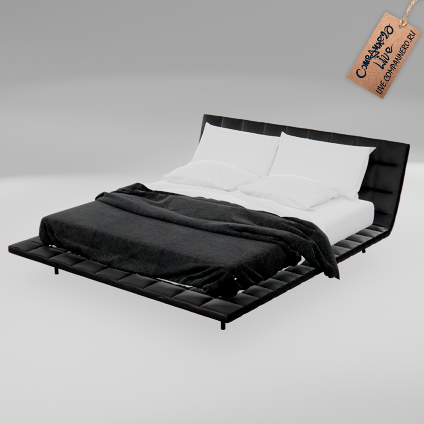 3D Модель (SketchUP `20) - Кровать строгая, низкая, черная (кожа)