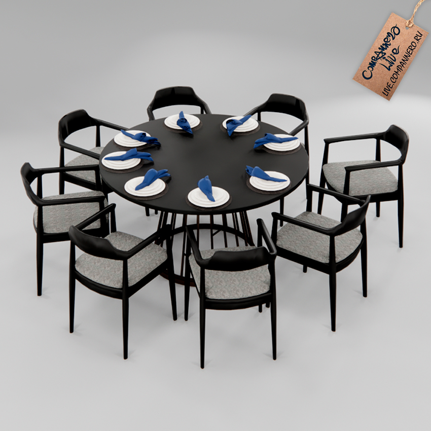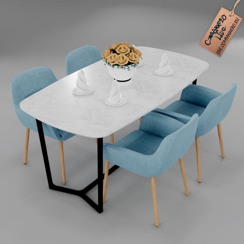 3D Модель (SketchUP `20) - Обеденный стол и мягкие стулья (сет)