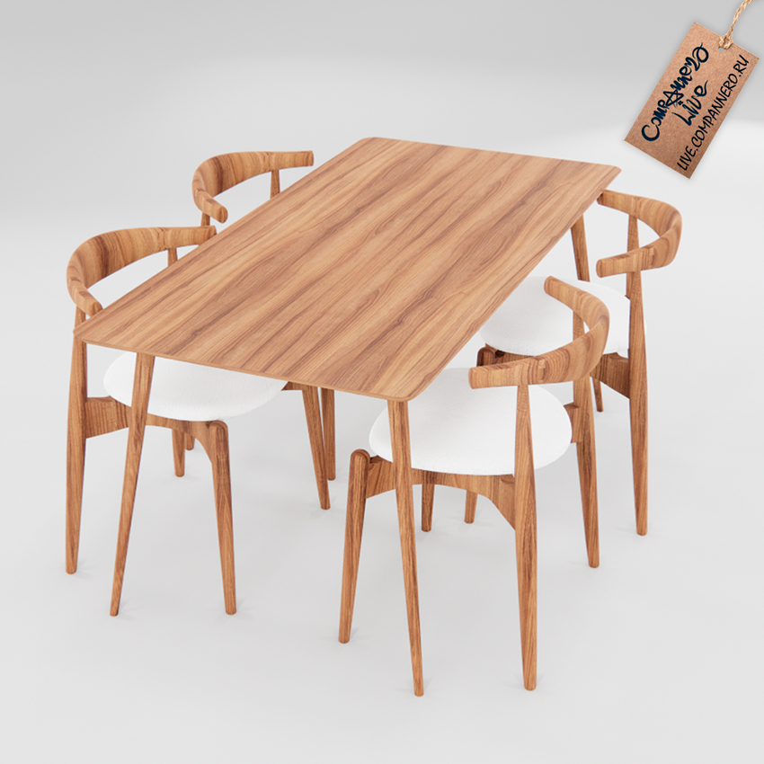 3D Модель (SketchUP `20) - Обеденный прямоугольный светлый стол и стулья (сет)