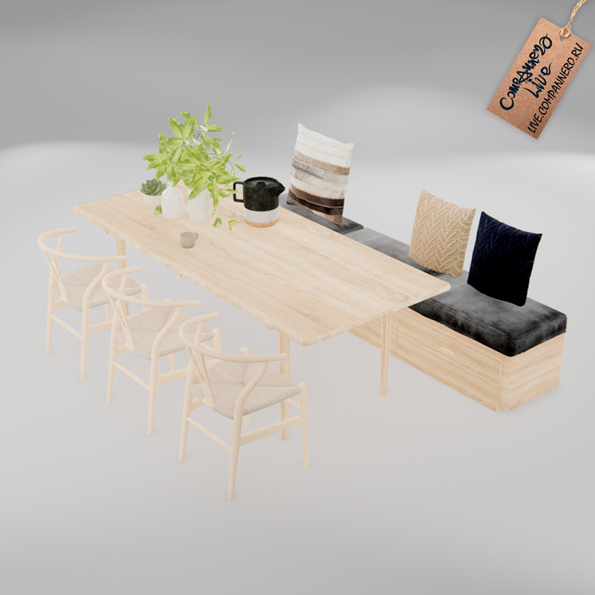 3D Модель (SketchUP `20) - Кухонный стол,стулья и скамья (сет)