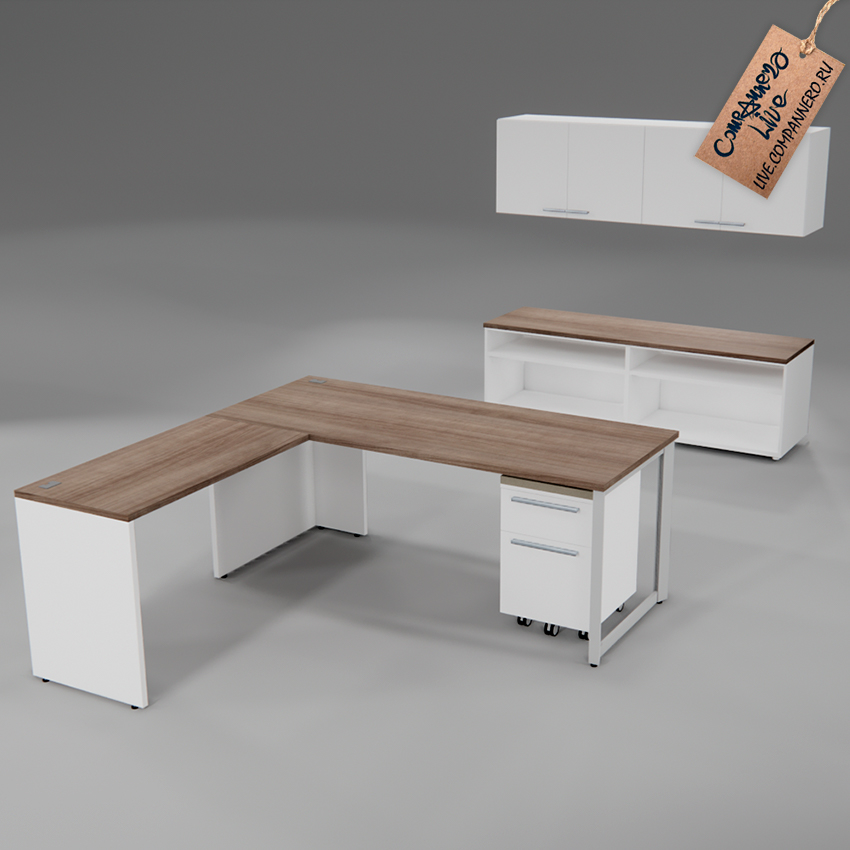 3D Модель (SketchUP `20) - Большой, угловой, белый офисный стол.
