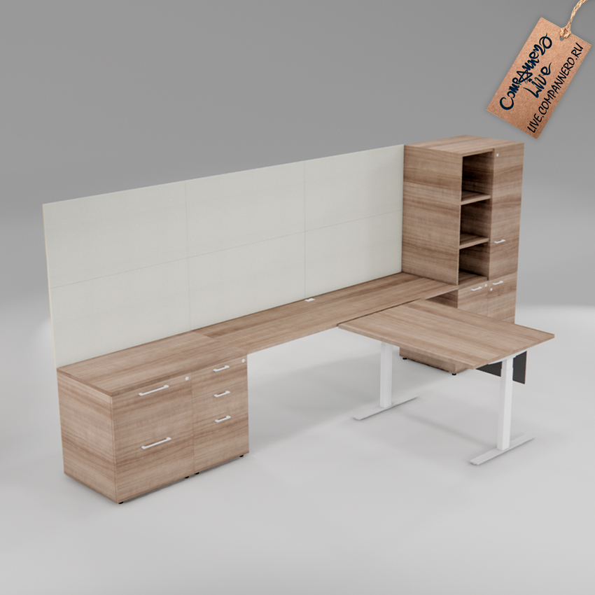 3D Модель (SketchUP `20) - Большой, офисный стол с островком (рабочее место)