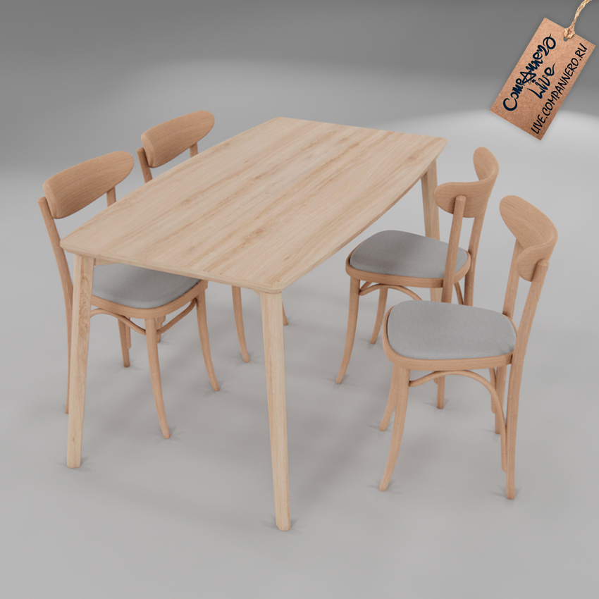 3D Модель (SketchUP `20) - Обеденный стол и стулья (простой, деревянный)