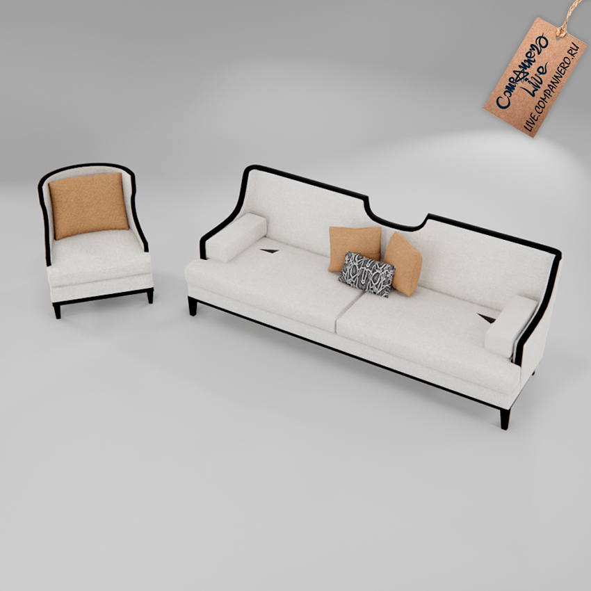 3D Модель (SketchUP `20) - Диван и кресло (строгий, белый)