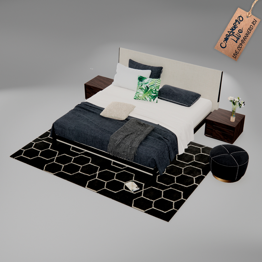 3D Модель (SketchUP `20) - Кровать сет (Серые оттенки)