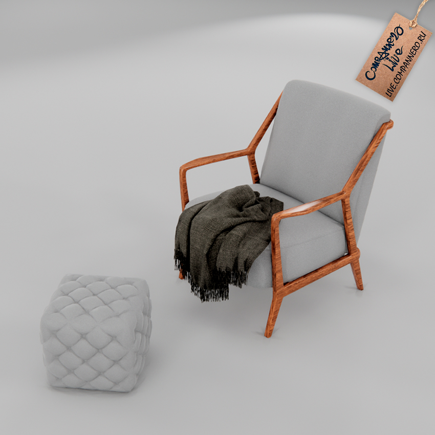 3D Модель (SketchUP `20) - Небольшое кресло и пуф (серый цвет)