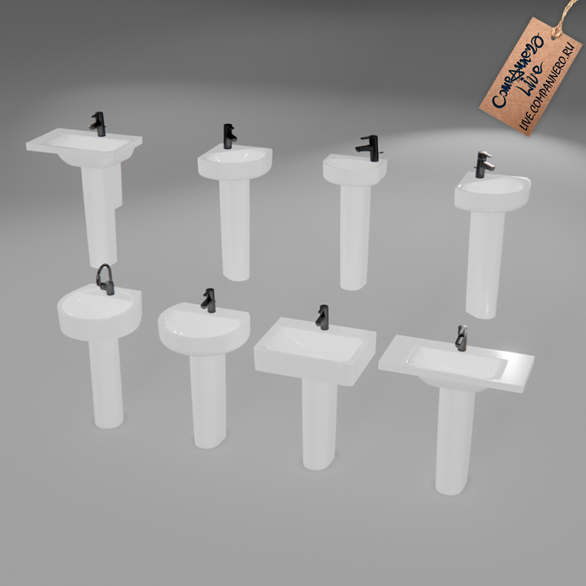 3D Модель (SketchUP `20) - Умывальники на ножке (разные, белые)