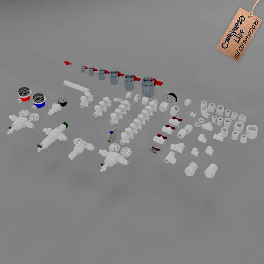 3D Модель (SketchUP `20) - Шаблоны пластиковых сантех труб (соединения, переходники, краны)