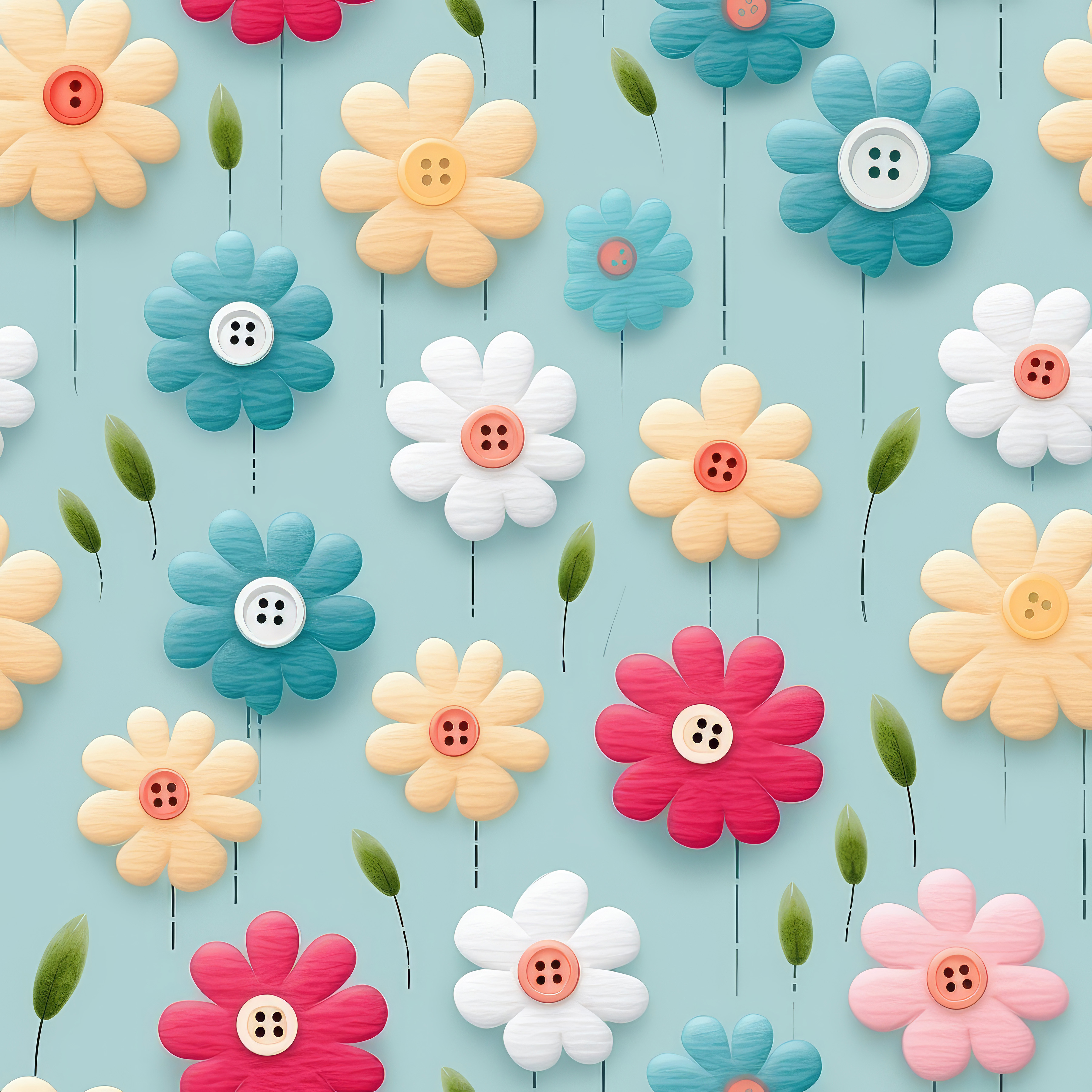 Паттерн Бесшовный - Цветы Аппликация (HandMade) 003