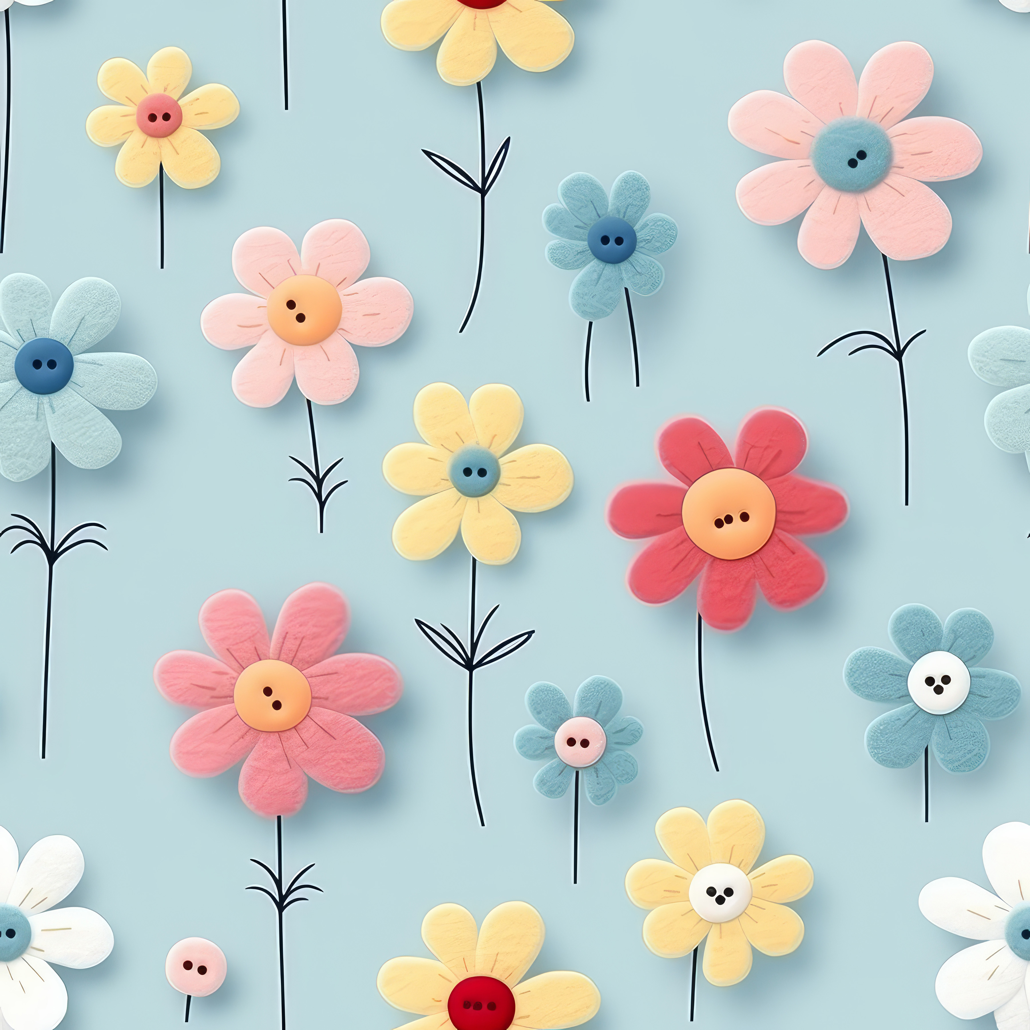 Паттерн Бесшовный - Цветы Аппликация (HandMade) 006