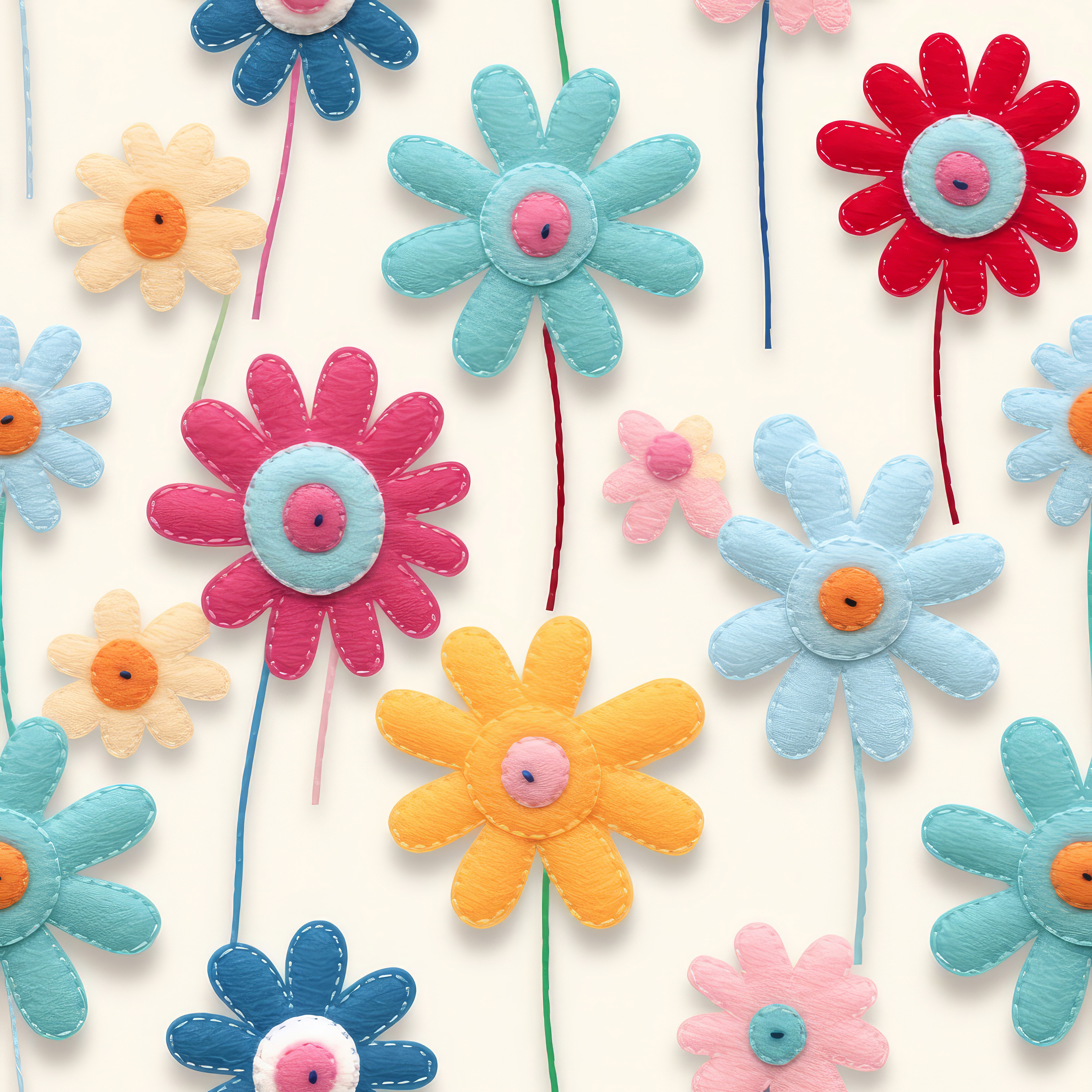 Паттерн Бесшовный - Цветы Аппликация (HandMade) 011